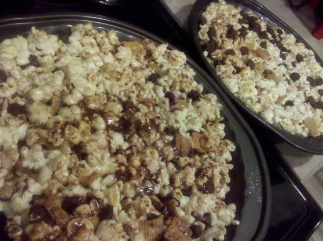 Our Smores treats turned out really well. I got the recipe out of a Popcorn Cookbook by Patrick Evans-Hylton. Tommy helped me make it before the girls arrived. I was so grateful for his help because I had not gotten my second wind for the day yet.